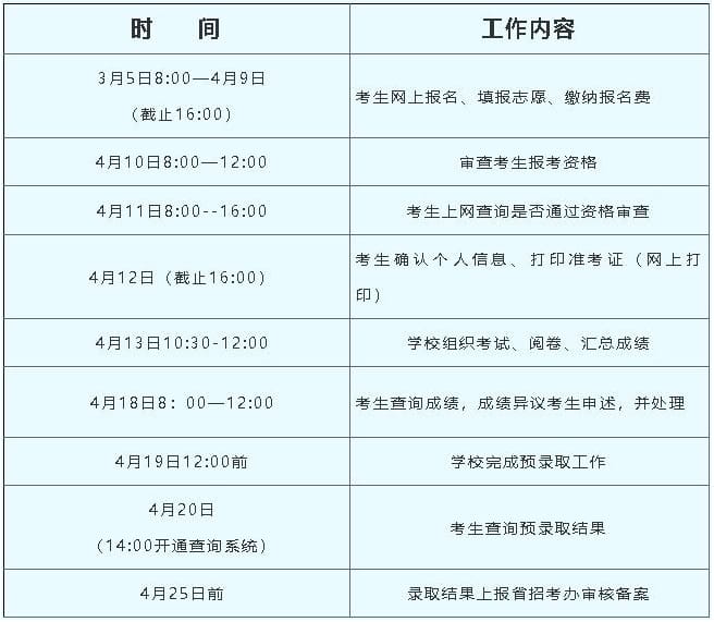 2024年单独招生工作流程时间安排表